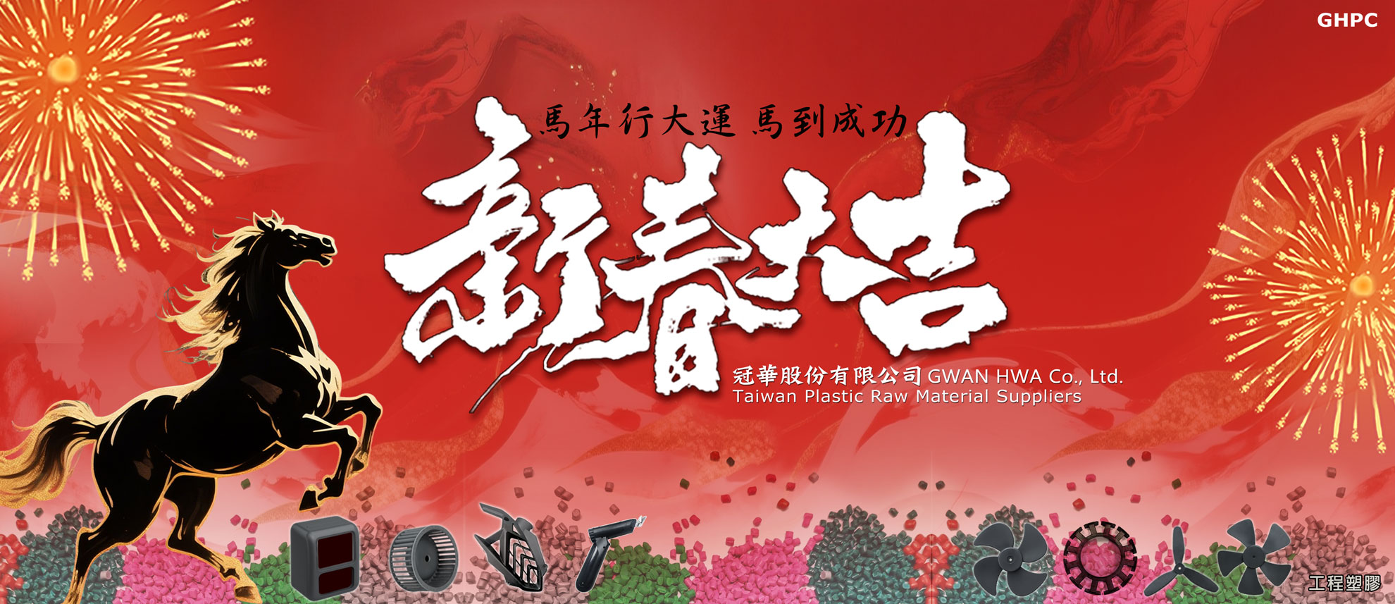 冠華專營尼龍NYLON(PA6、PA66、PA12)、PP、PC、PS、PPS、ABS、POM、TPE、TPU、TPR、PE、PVC、PCR等工程塑膠粒,並開發出PA低溫耐衝擊、玻纖/礦纖強化及阻燃級規格尼龍,PP聚丙烯低溫耐衝擊、玻纖/礦纖強化級。更針對電動車開發出電動車零件專用PA及PP,結合TPR雙射射出成型材,成功開發電動車內部機電散熱複合材,並研發成功各種工程塑膠的PCR(Post-Consumer Recycled)產品,更研發出各種導電/抗靜電的工程塑膠複合材,更專為無人機研發出輕量化的PA碳纖材料。冠華客製化原料皆為台灣工廠研發生產, 是各大產業的 塑膠粒 供貨廠商,另有銷售東麗 TORAY、中石化 CPDC、T-BLEND、日本MITSUBISHI、URELON、LIBOLON、T-BLEND、蘇威Solvay、南亞NPCYA、杜邦DuPont、帝人TEIJIN、邦泰Pontex、帝斯曼DSM、寶理Poly...等國內外品牌。冠華可依顧客產品需求客製化添加GF玻璃纖維、MF礦纖、CF碳纖、增韌、UL94 V0防火 阻燃、抗UV、耐磨耗、導電、抗靜電、ESD、EMI或指定電阻範圍、易注塑 射出級或押出級...等多種規格的改性複合材料。